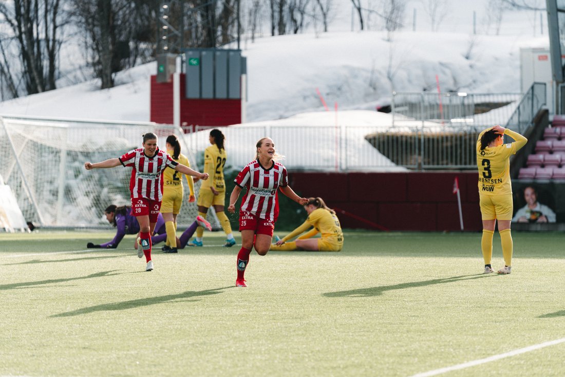 Damene våre briljerer like mye i 2. omgang og Glimt har kun ballen i få sekunder før Tromsø vinner den tilbake. Birkelund er ikke ferdig med å score for dagen og i det 75` minuttet setter hun 2-0.