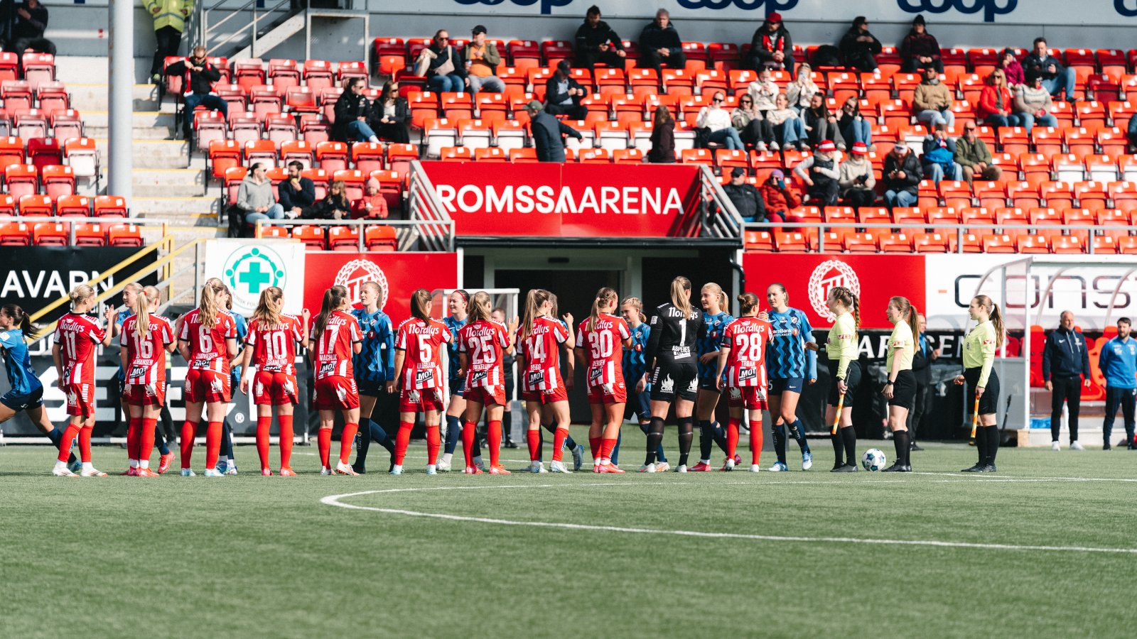Kampen sparkes i gang og fra start er det Tromsø som er det styrende laget. Vi tar grep om kampen og motstanderen, og kommer til flere avslutninger men ingen ender dessverre i nettet.