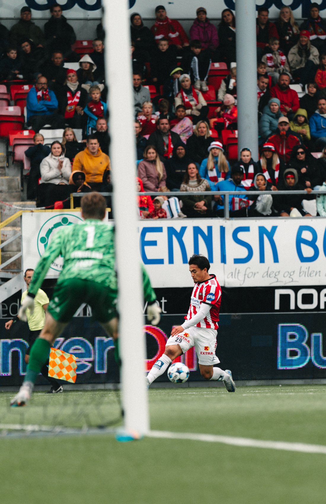 Det skjer ikke så mye etter dette og vi går inn til pause med en liten ledelse. En enorm innsats på banen fra Tromsø i første omgang.