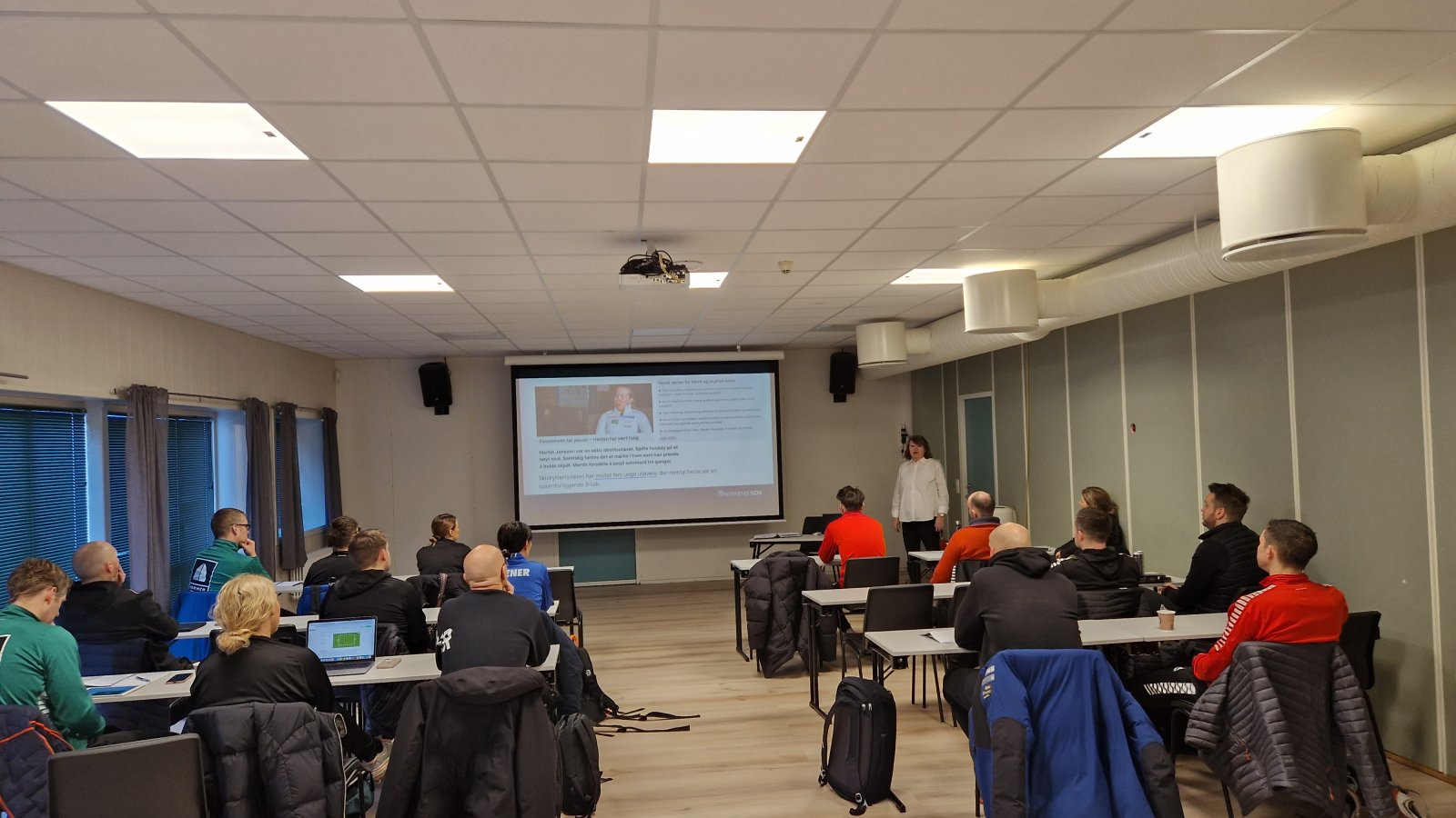 På kurset hos Fløya fikk vi besøk av Gry Heggås Jensen ved Kirkens SOS som snakket om selvmord, et interessant tema som vi må tørre å snakke høyt om. Her er det veldig greit å involvere trenere som vil nå ut til unge gutter og jenter med trygghet og kunnskap om dette temaet.