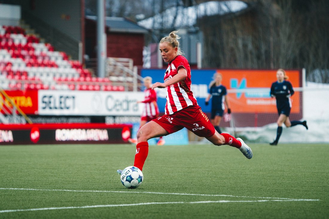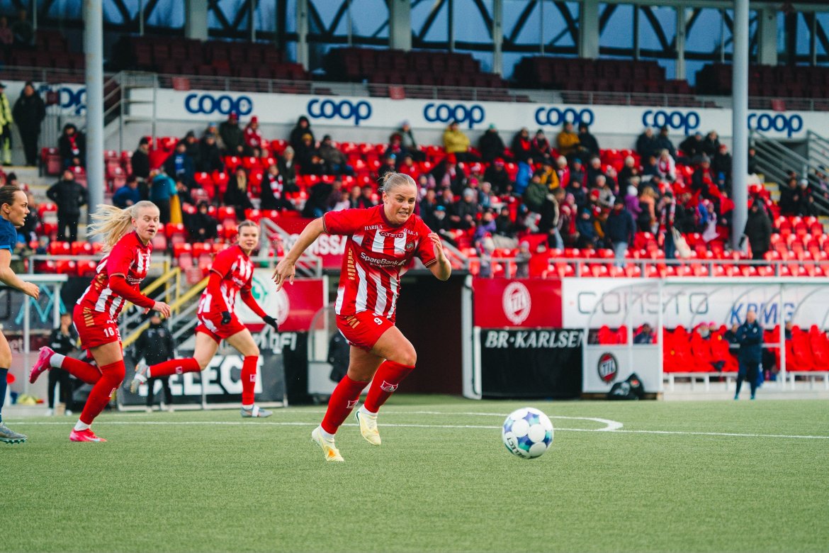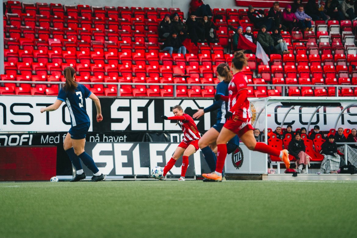 Det hele ender 3-0 etter at Elisabeth Skall setter inn et mål etter 84 minutter.