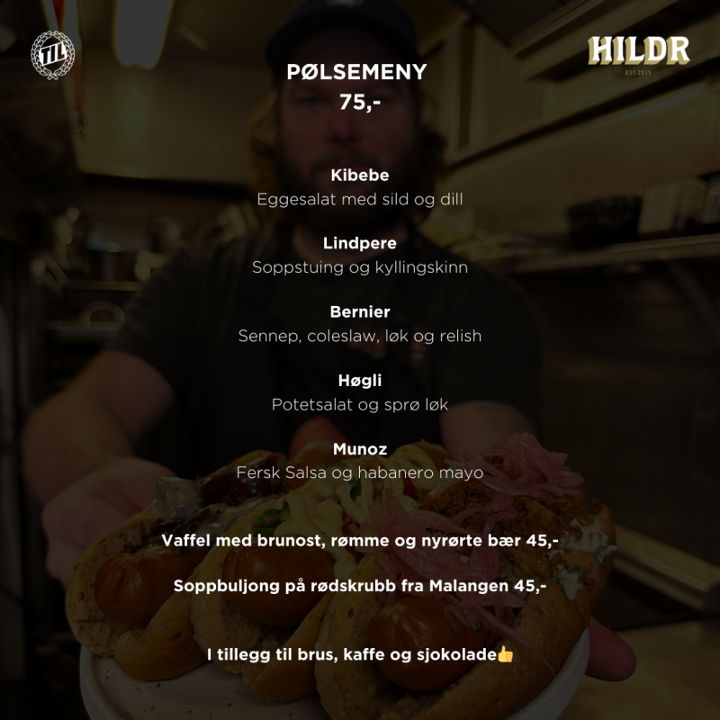 Kjøp deg en kopp kaffe, sjokolade, vår legendariske Mydlandpølse, vaffel og mer til.