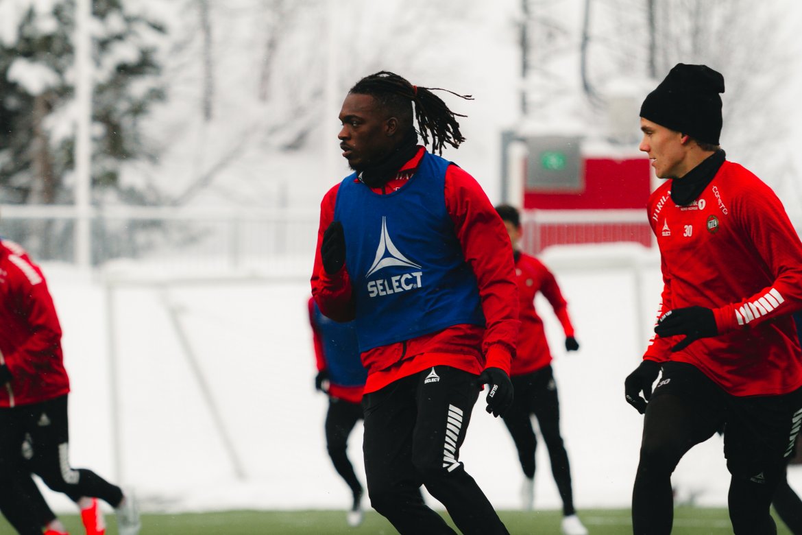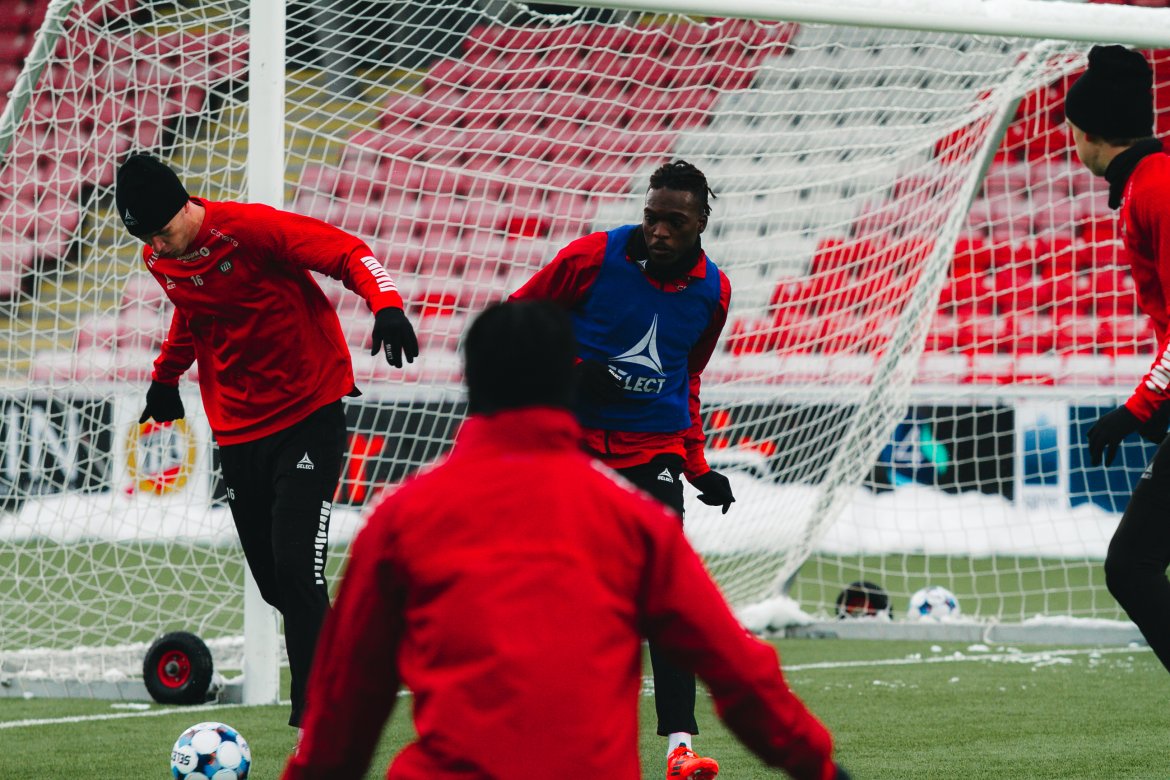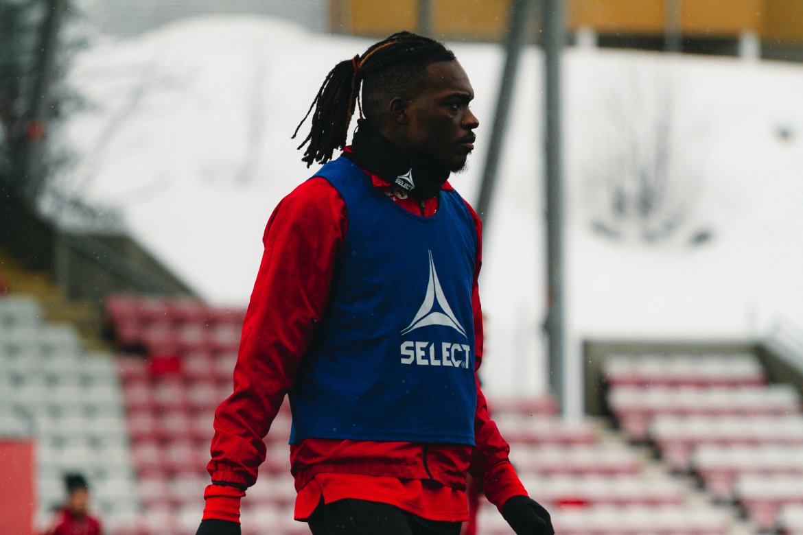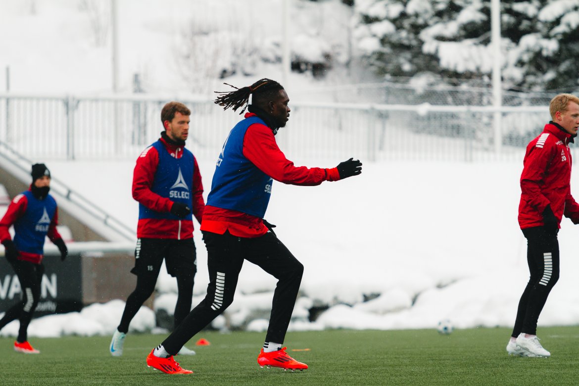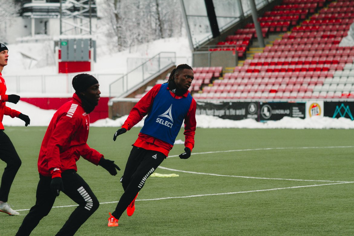 I lett snøvær har Tromsø IL sin første trening for uken og her finner vi vår nye spiss.