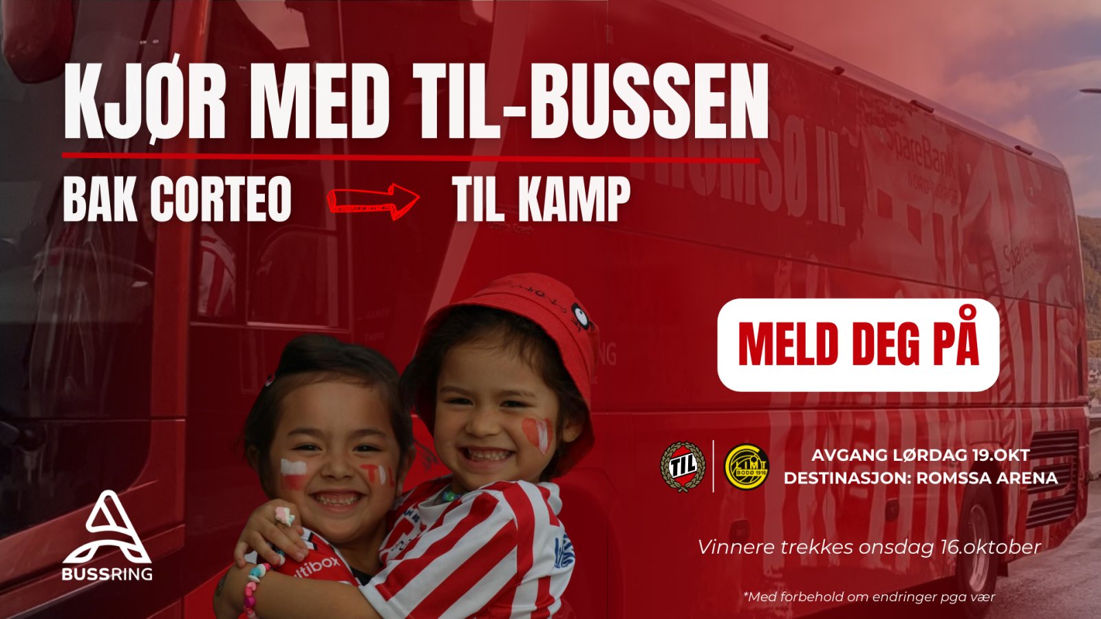 Sammen med Bussring kjører vi deg og ditt barn/ en venn til kampen mot Bodø/Glimt neste lørdag 19. oktober. Les mer og meld deg på her.