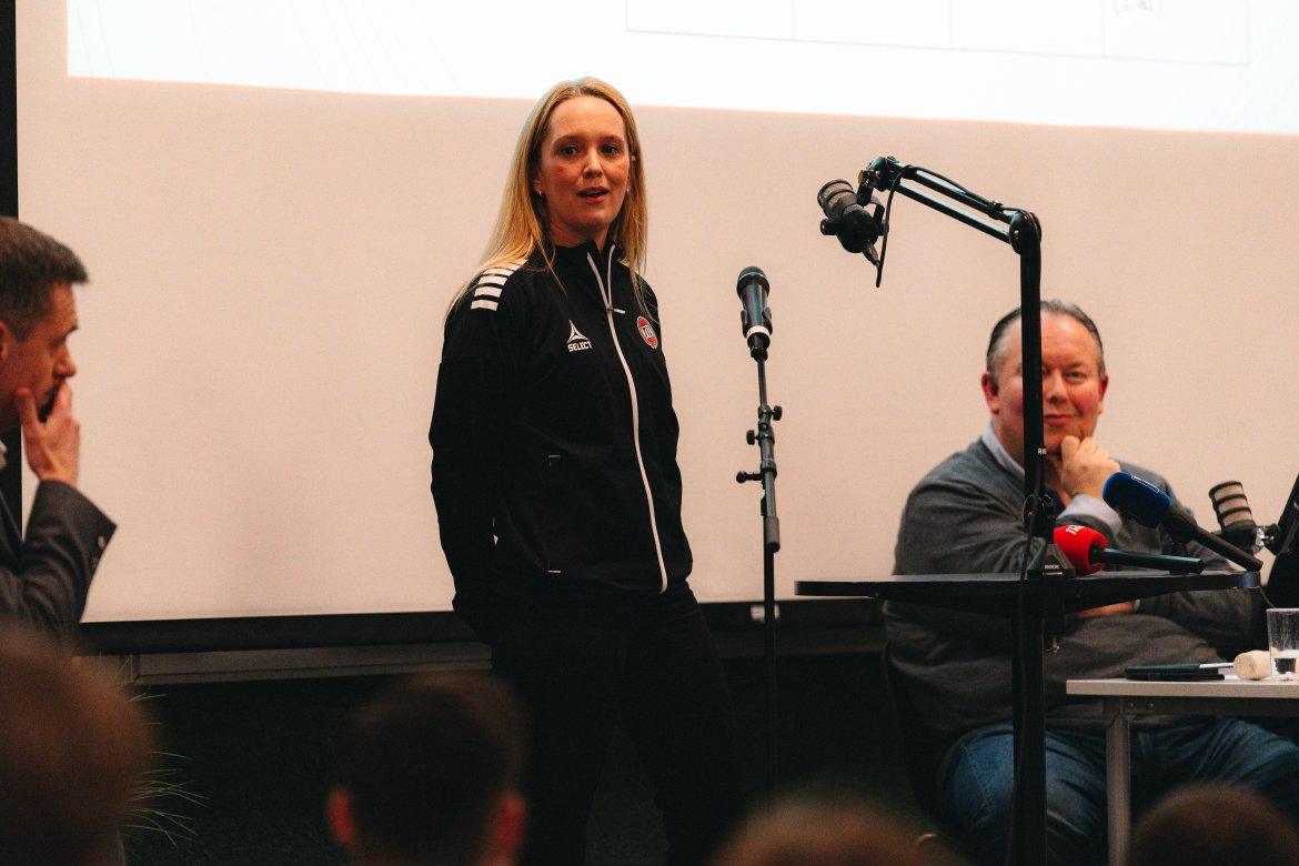 Tromsø IL sin nestleder Astrid Strandbu kommer opp og tar ordet. Hun forteller tydelig at TIL-styret også avviser mistillitforslaget.