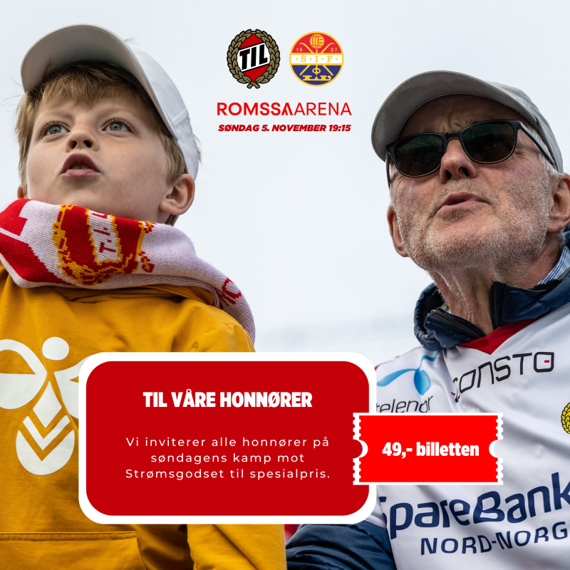 I anledning søndagens kamp mot Strømsgodset ønsker vi å gjøre ekstra stas på våre honnører. Derfor inviterer vi på kamp til spesialpris, kr 49,- for billetten.