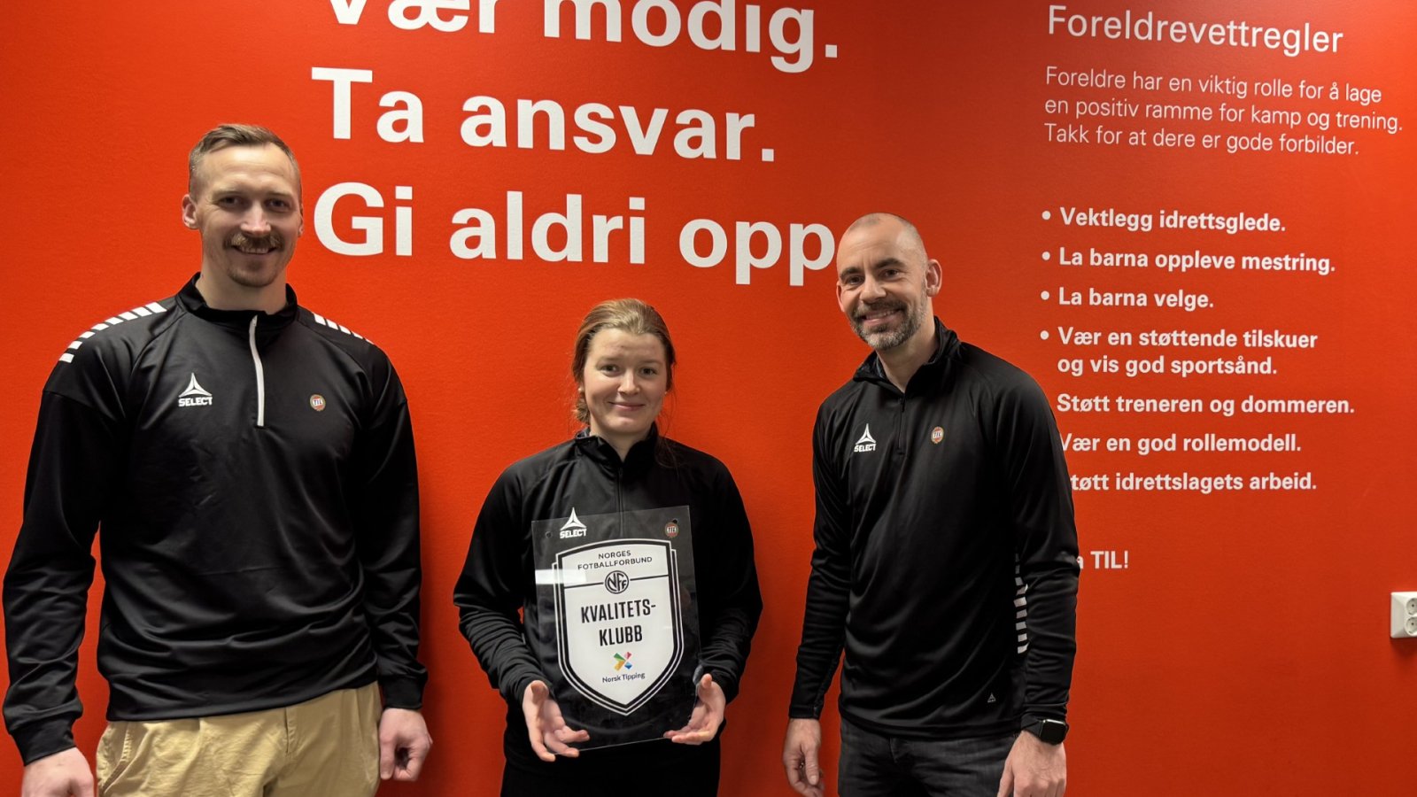 Ny verdivegg på plass i 1.etasje i Lerøyhallen og ny resertifisering som NFF-kvalitetsklubb.