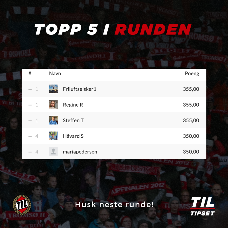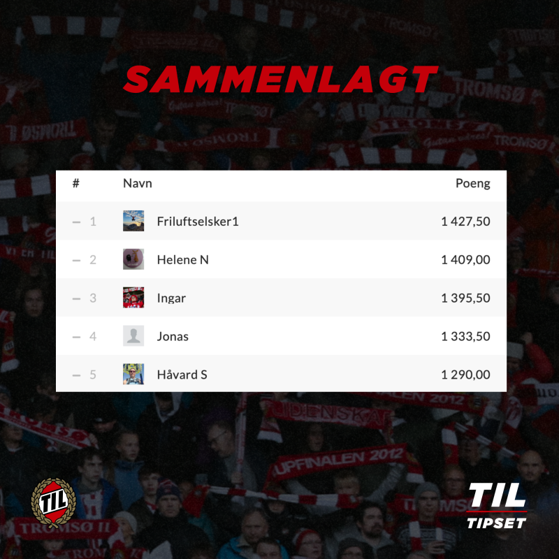 Den andre utgaven av TIL-tipset er ved veis ende. Over 700 har vært med på reisen i årets sesong. Tusen takk for at du har vært med å engasjere deg i den digitale verden i forbindelse med årets hjemmekamper.