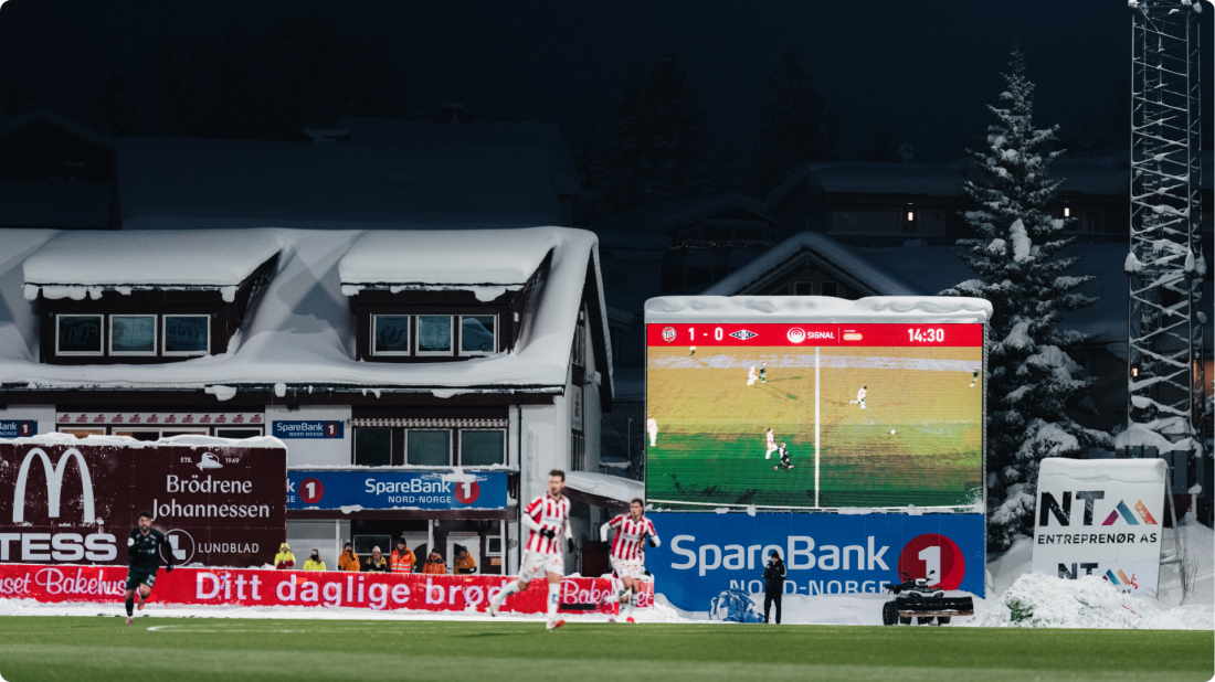 TIL tilbyr synlig og engasjerende innhold til publikum på Romssa Arena gjennom vår storskjerm. Promoter ditt budskap gjennom våre skreddersydde pakker tilpasset dine behov og ønsker. Eksponeringen er den råeste vi har på stadion. Sammen skaper vi opplevelser for publikum.